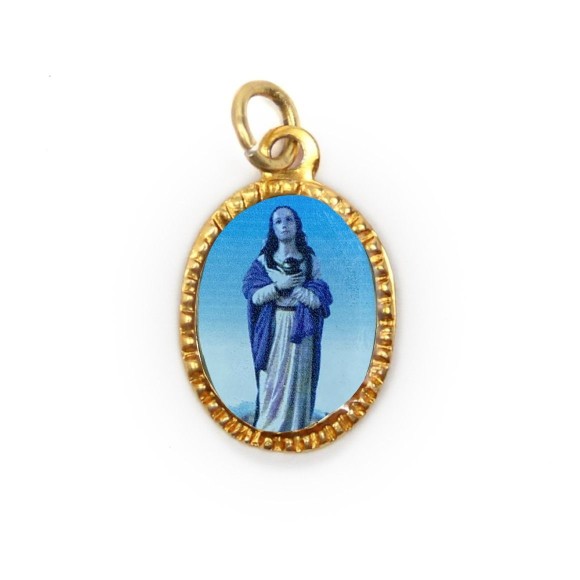 *Medalha de Alumínio Oval Dourada c/ 10un Santa Maria Madalena - 2x1,3cm.