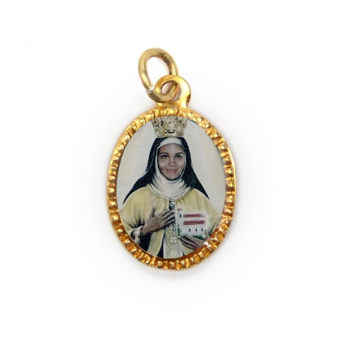 *Medalha de Alumínio Oval Dourada c/ 10un Santa Efigênia - 2x1,3cm.