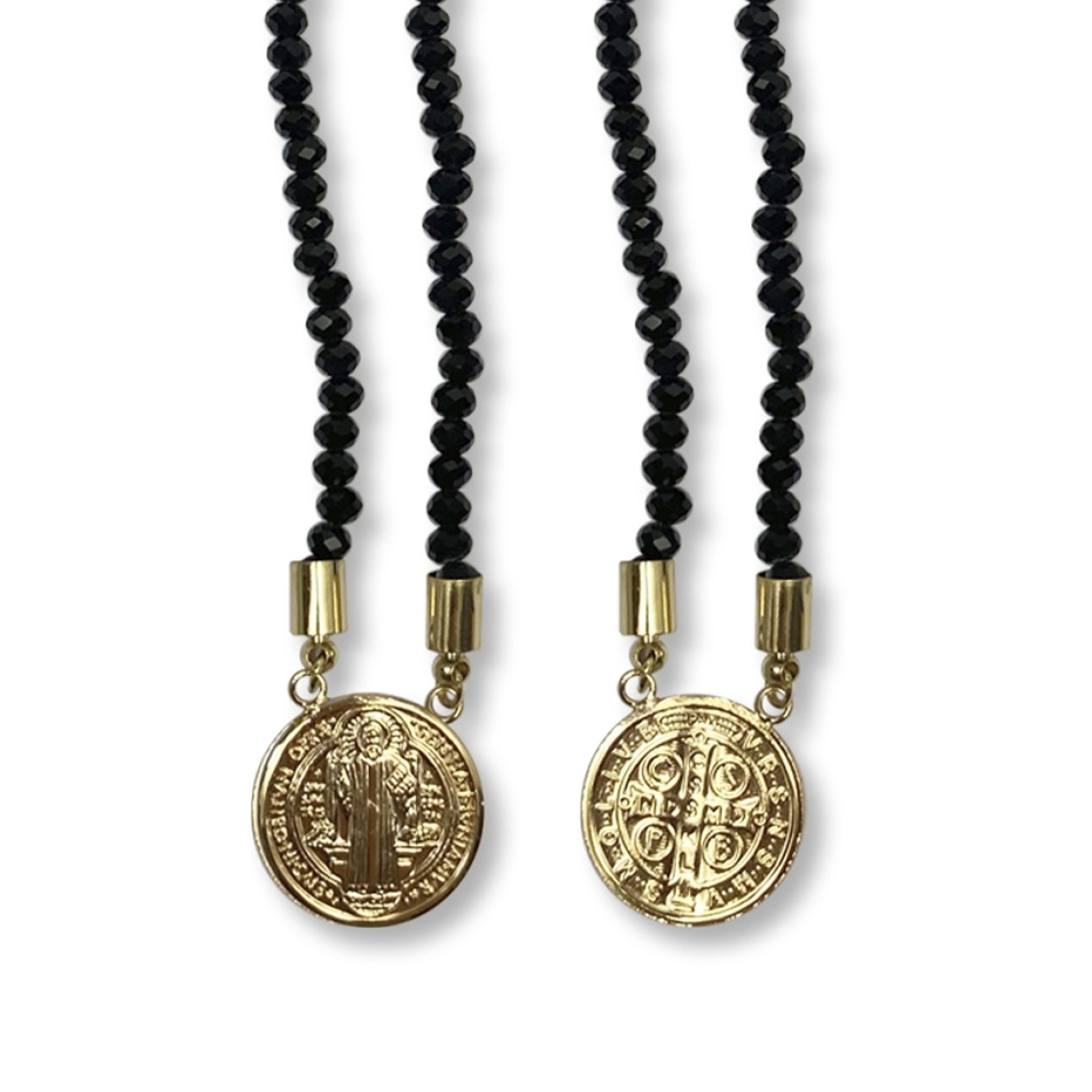 *Escapulário São Bento Dourado Cristal Preto.