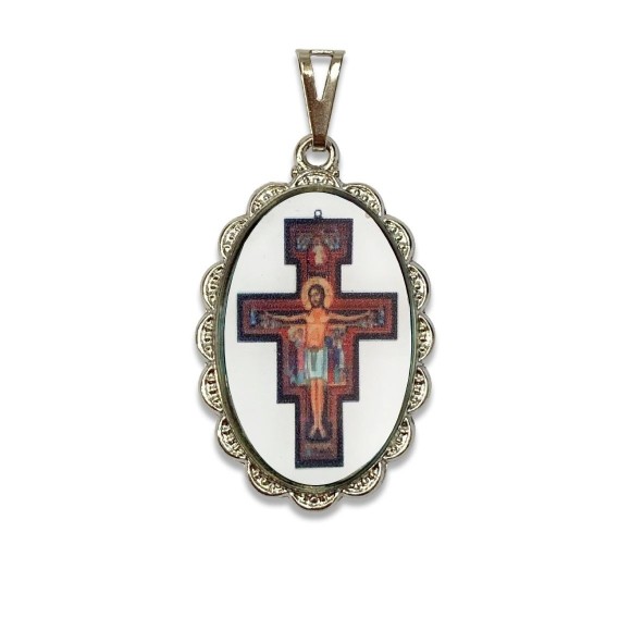 MD128464 - Medalha Cruz de São Damião Rendada Níquel - 5x2,5cm
